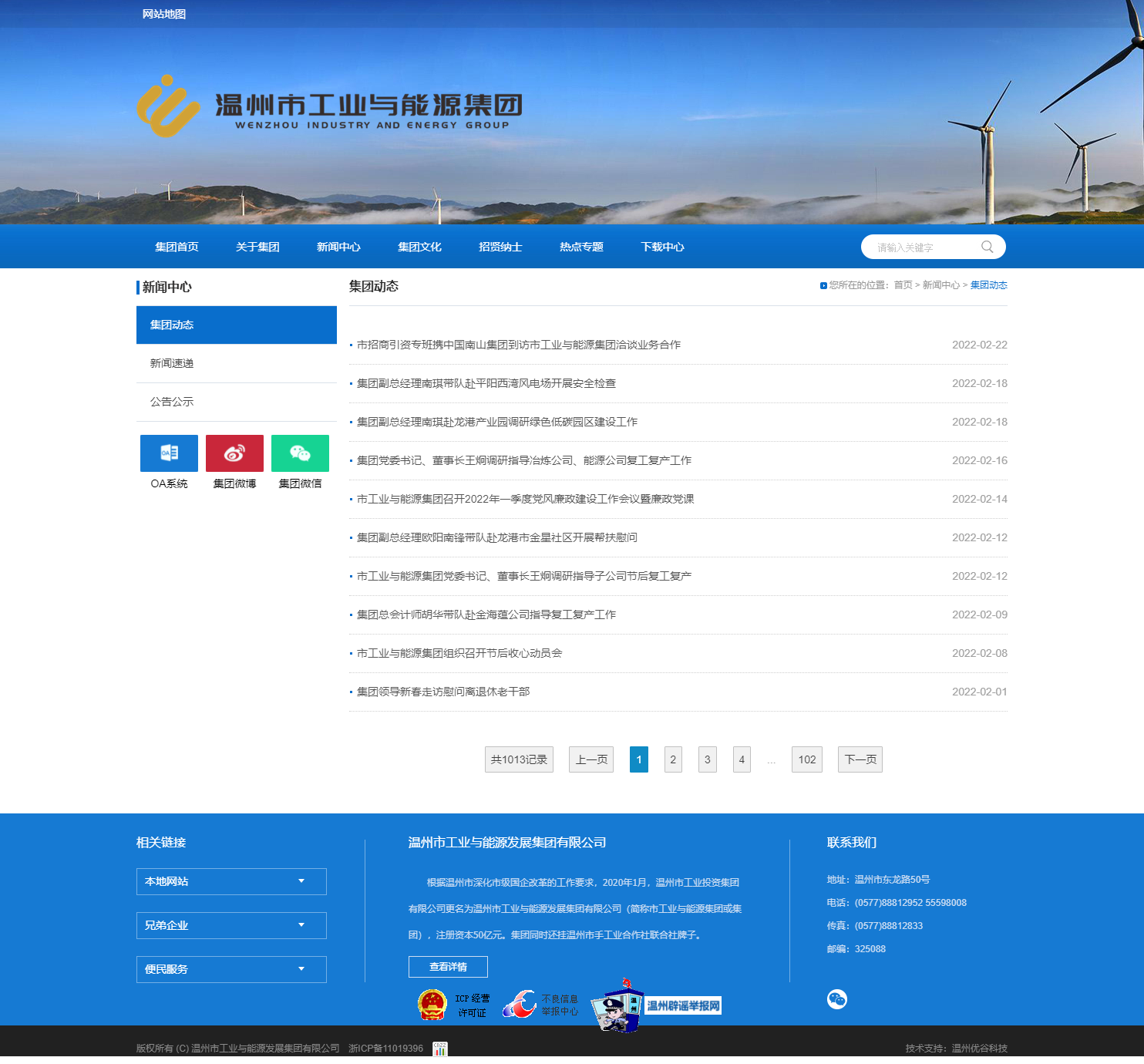 2020年1月,溫州市啟動(dòng)國(guó)有企業(yè)深化改革,原溫州市工業(yè)投資集團(tuán)優(yōu)化組建為現(xiàn)在的溫州市工業(yè)與能源集團(tuán),為溫州市十大國(guó)有集團(tuán)之一,注冊(cè)資本50億元。集團(tuán)同時(shí)還掛溫州市手工業(yè)合作社聯(lián)合社牌子。