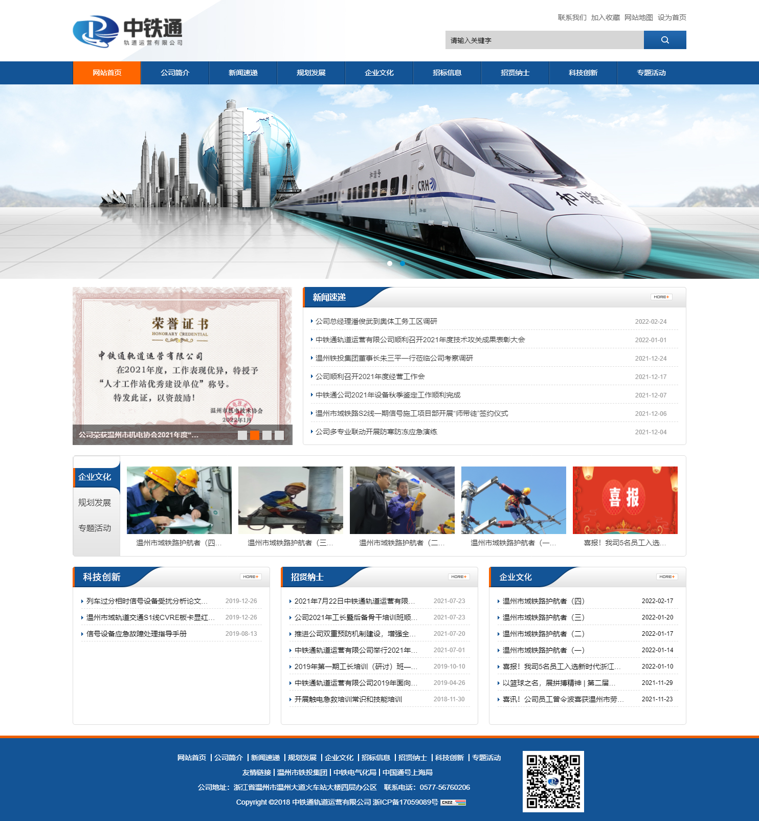 中鐵通軌道運(yùn)營(yíng)有限公司(簡(jiǎn)稱中鐵通公司)由溫州市鐵路與軌道交通投資集團(tuán)有限公司(簡(jiǎn)稱溫州鐵投集團(tuán))聯(lián)合中國(guó)中鐵電氣化局集團(tuán)有限公司(簡(jiǎn)稱中鐵電氣化局)、中國(guó)鐵路通信信號(hào)上海工程局集團(tuán)有限公司(簡(jiǎn)稱中國(guó)通號(hào)上海工程局)兩家中央企業(yè)合資設(shè)立的有限責(zé)任公司,成立于2017年1月19日,總部設(shè)在浙江溫州。